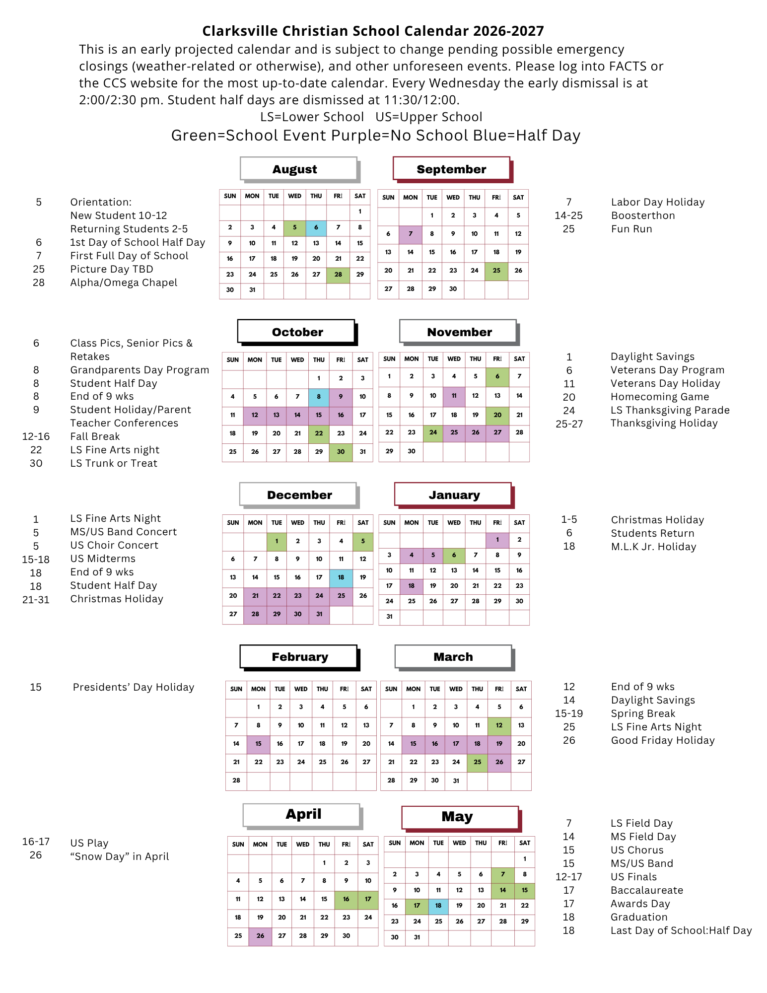 Upper School (6th-12th): 8:30 a.m. – 2:30 p.m.